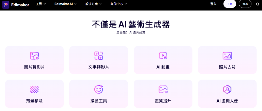 | Edimakor | Windows, Mac, iOS, Android | 免費試用,付費方案約 $18/月 | 繁體中文支援,50種以上風格,解析度高,生成快速,新手友善 | 進階功能需付費 | 繁體中文指令、參考圖上傳、4K輸出 | ★★★★★ |