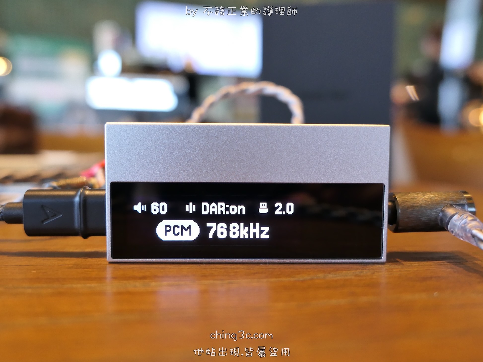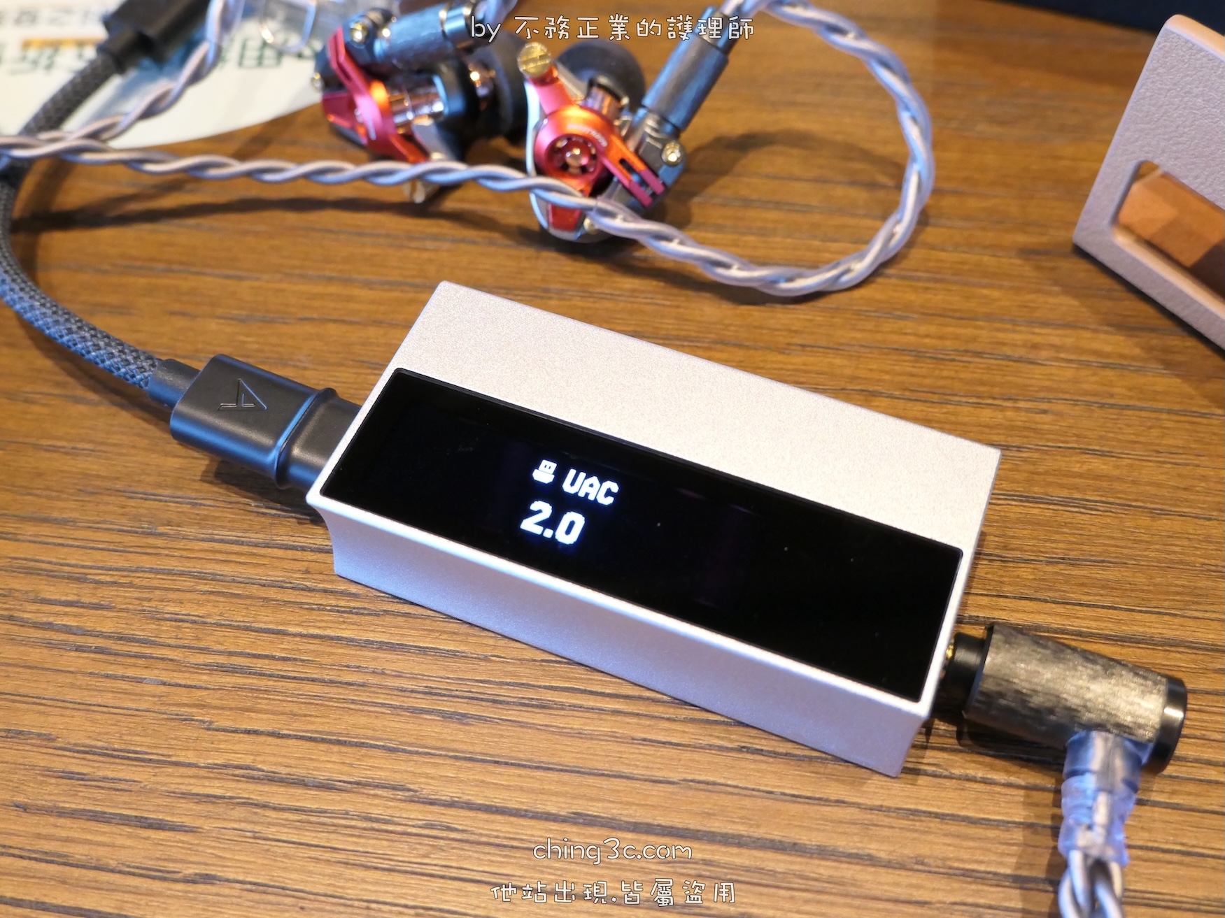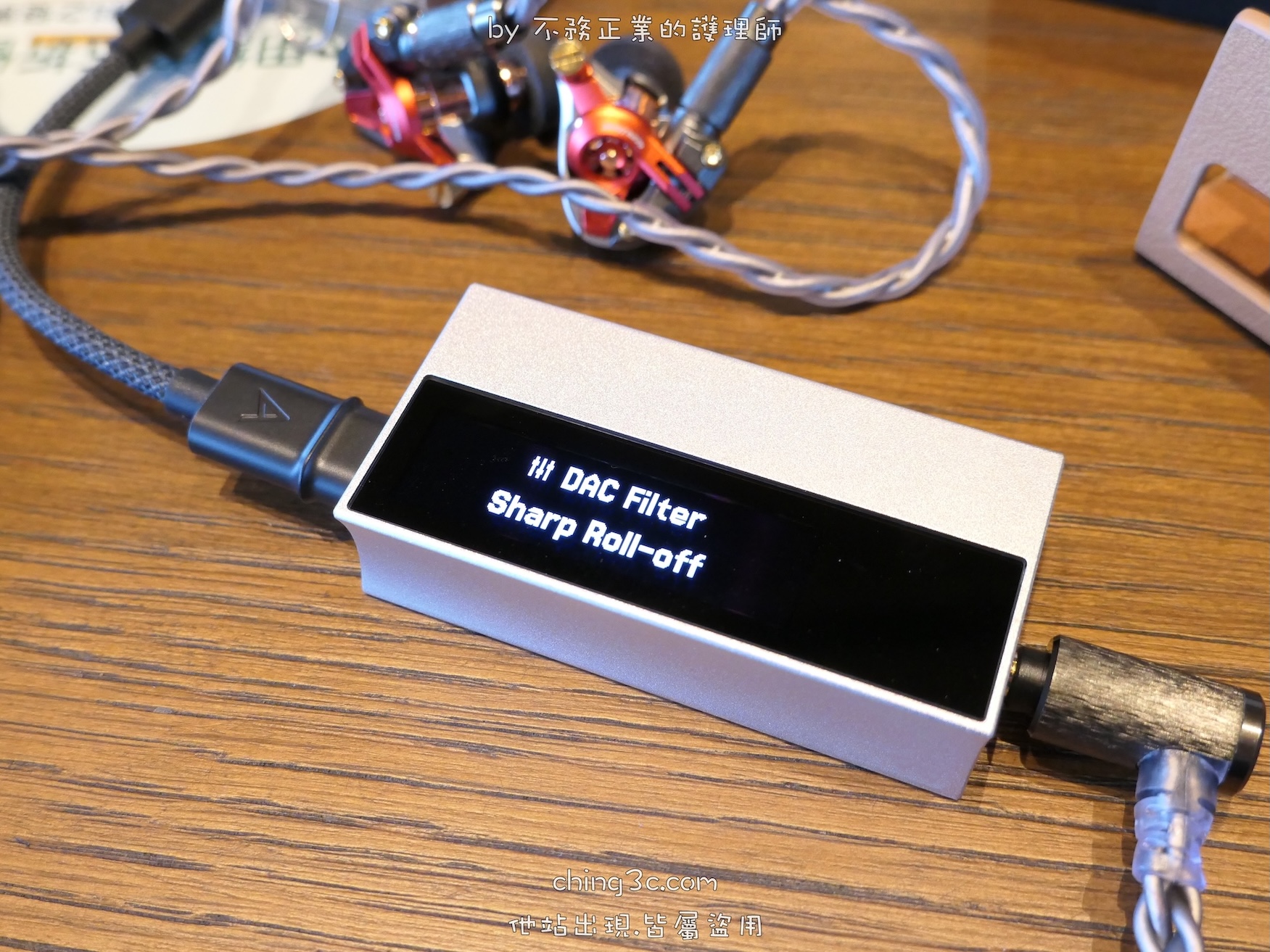 機身內建 1.62 吋 OLED 螢幕,搭配 150 段精密音量旋鈕。而隨附的 雙頭 Type-C 與 Type-C to Lightning 二條線材, 線材採 Dual Noise-Shielded 結構(包含鍍錫銅導體、鋁箔與編織遮蔽層),可降低外界電磁干擾,維持傳輸穩定與背景純淨。 且為了最大程度減少手機或電腦供電品質對聲音的影響,機內搭載高 PSRR/CMRR 專用放大器,抑制外來電源雜訊。以期在不同使用環境下,用戶皆能取得純淨而清晰的聲音。