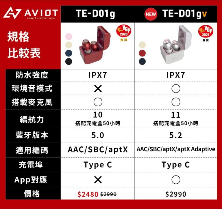 同場加映『專屬AVIOT TE-D01g矽膠保護套』,主用是給前一代的「TE-D01g」使用,但可用於「TE-D01gv」。