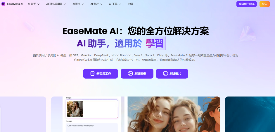 此時,像 EaseMate AI 這種的集合平台便扮演了關鍵的橋樑角色。它被眾多用戶譽為 「無需訂閱、最便捷體驗類 Veo 3 功能的免費方案」。EaseMate AI 的核心優勢在於其無障礙的設計理念: