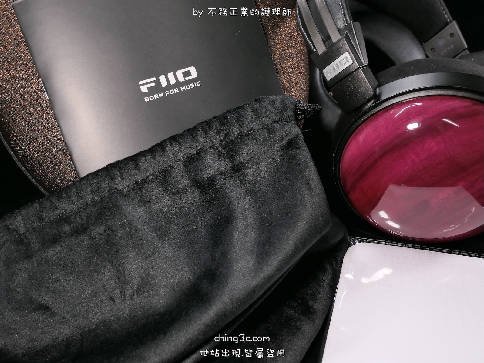 配件尚有耳機收納絨布袋與拭淨布。