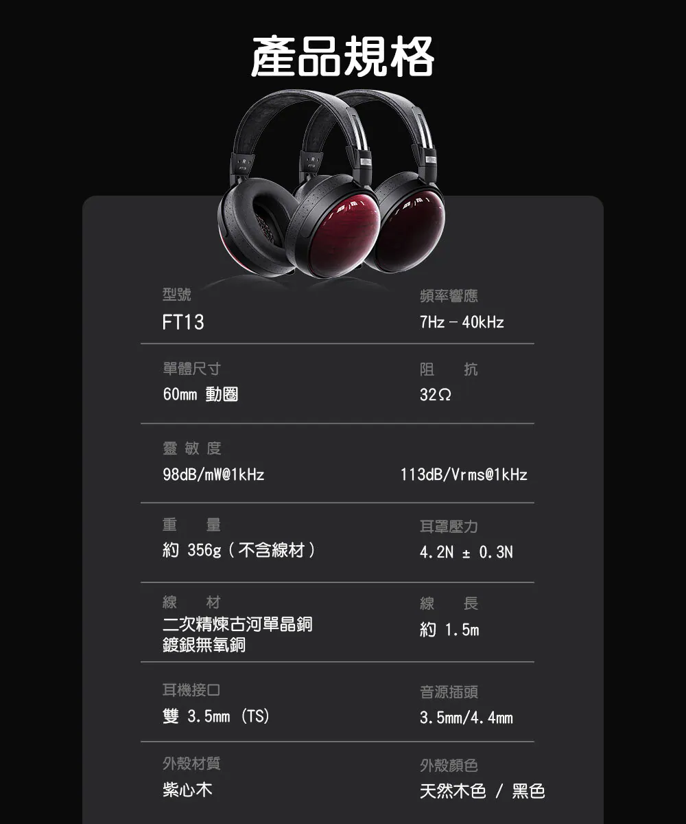 玩家不需過度燒腦, FT13 擁有優質天然木殼、真皮頭樑,外型肯定是有質感的。充足的配件亦可讓用戶免去另購,加上溫潤不失素質的好聲音,十分值得您入手!👍👍