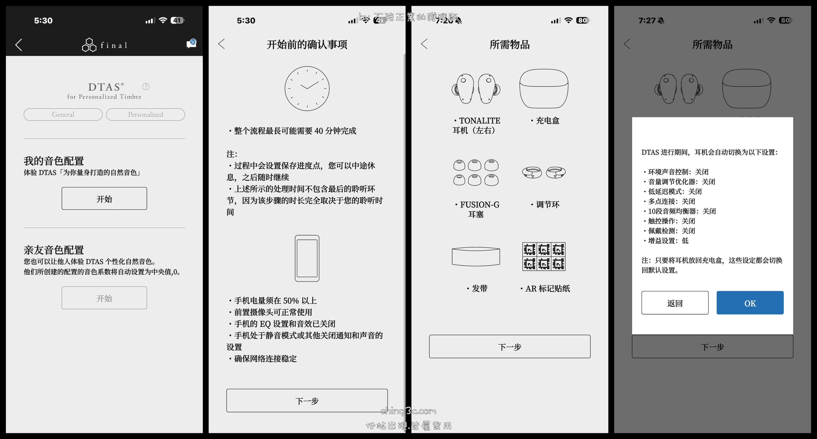 雖說測定時間有些久 ; 但設定過程十分有趣,有點中二(要戴頭巾🤣)。可對於喜歡玩新事物的朋友,肯定覺得超好玩!而在掃描分析後,會進一步帶您調整音色個人化,此功能可在之後重新微調,不用再花時間掃描。日後在 APP 內可以切換:DTAS General(預設音色)、DTAS Personalized(音色個人化調整)。初始依舊存在,您還是可以使用。