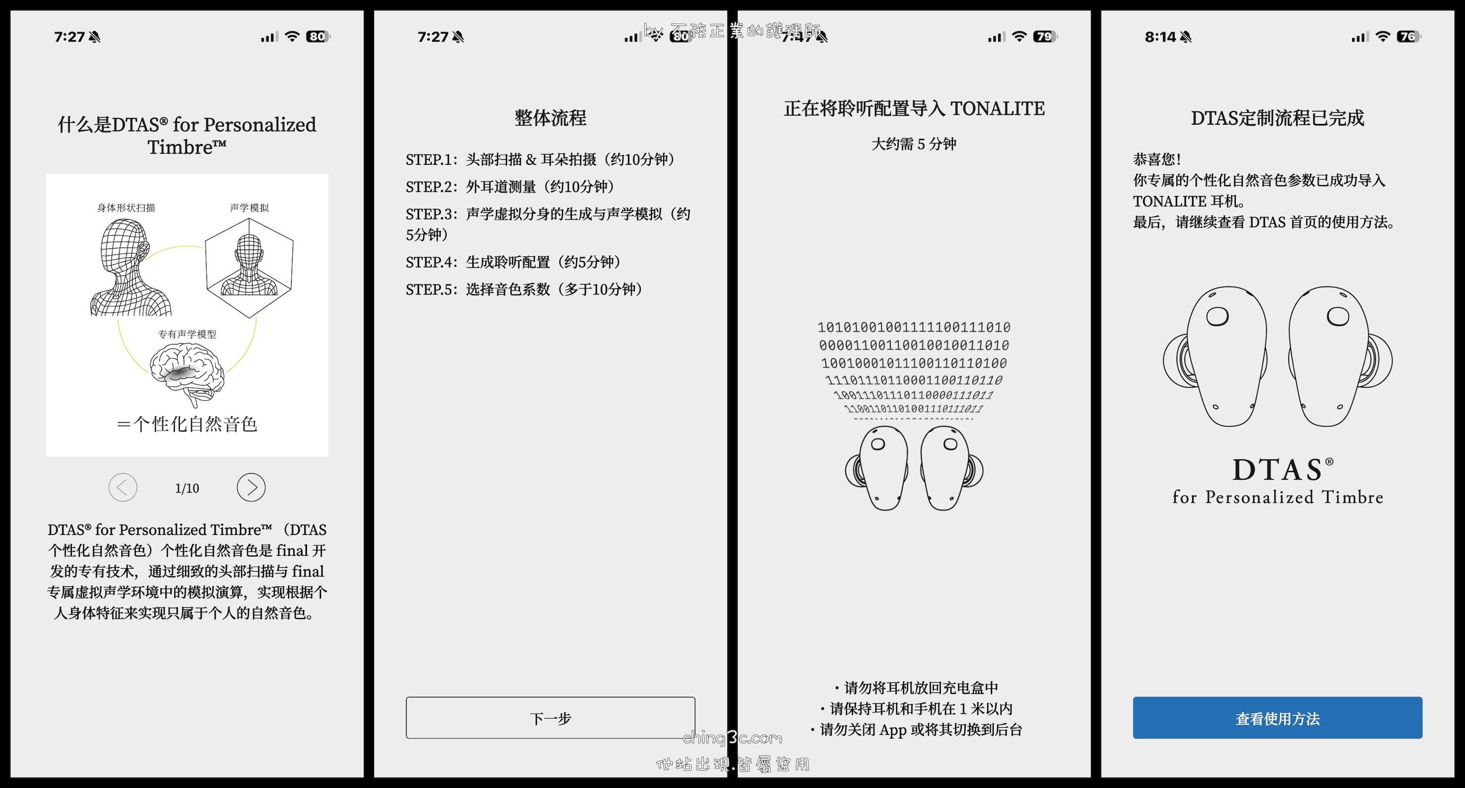 它並未像之前測試 ZE8000 時,需在 EQ 花心思自定義,這次您只需要花點時間。約莫 40 分鐘,按照專屬 APP 流程,耐心走完此模擬技術,它會將屬於您的最佳音效寫入耳機。您不需擔心切換不同設備這些資料會被清除(除非重置🤣),而分析過的資料在雲端於 30 天後會自動銷毀⏰。