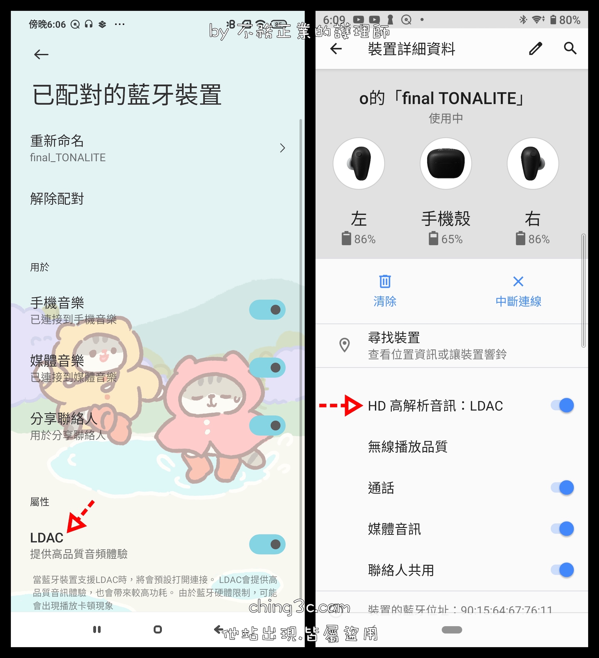 | LDAC | 24bit / 96kHz ,三段碼率 330 / 660 / 990kbps |