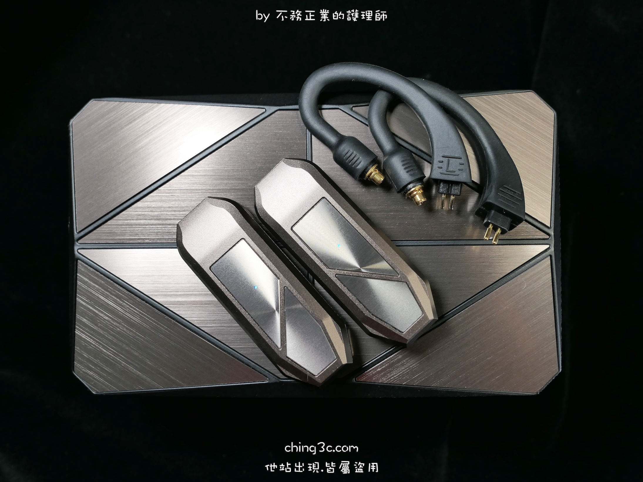 它是一款專門為高階 IEM 所設計的旗艦級耳掛真無線藍牙模組,以 HiFi 為架構,內部採用獨立藍牙接收、 Cirrus Logic MasterHIFI DAC 以及耳擴三段式設計。具有自動偵測耳機阻抗並匹配輸出功率(支援 16、32、64、300Ω)的功能,讓不同阻抗的耳機展現更穩定的輸出。本體為鋁合金材質,搭配可替換式耳掛,附有 2Pin、MMCX 二種接頭。玩家也可因應自身需求,選購 T2、PentaconnEar、A2DC 等接頭。