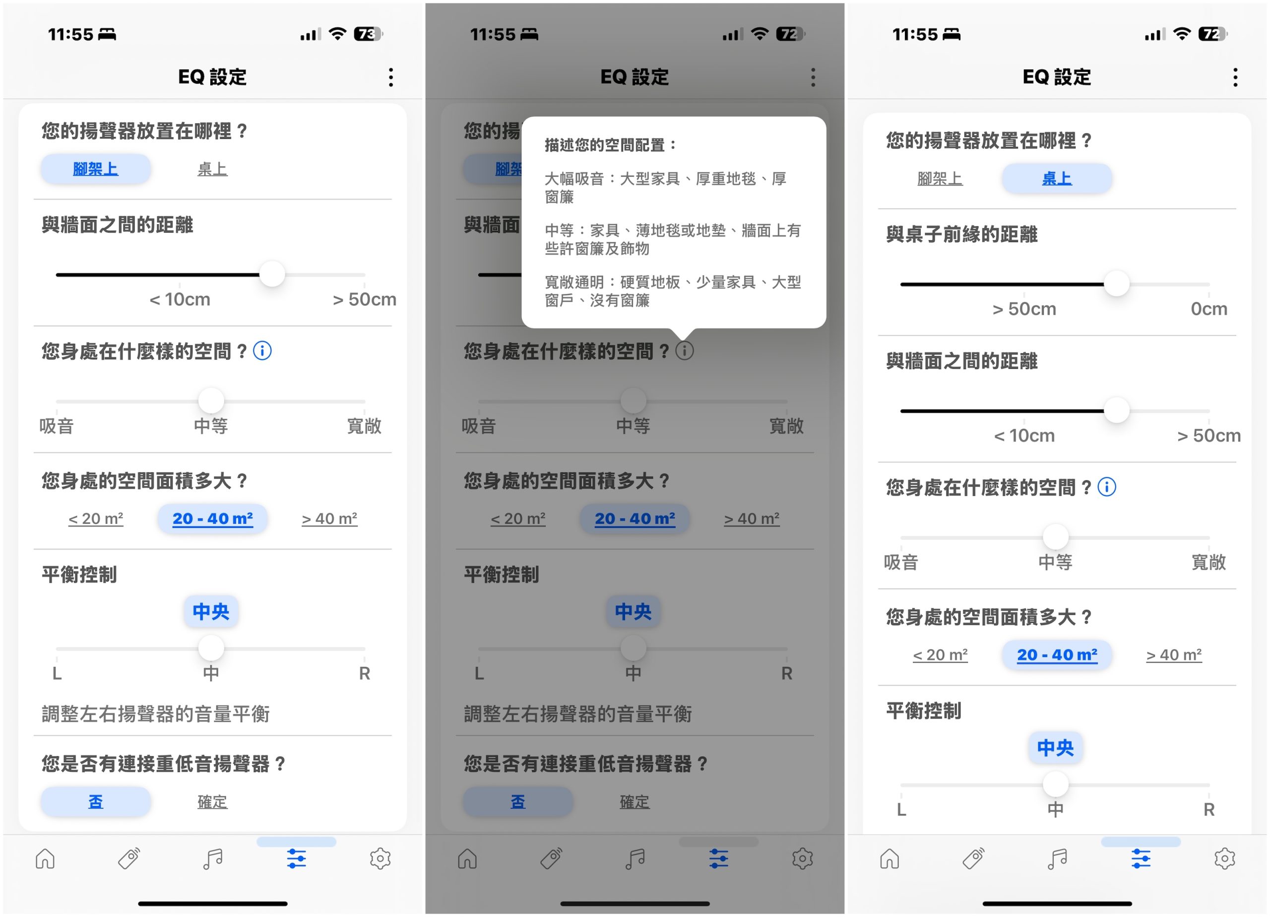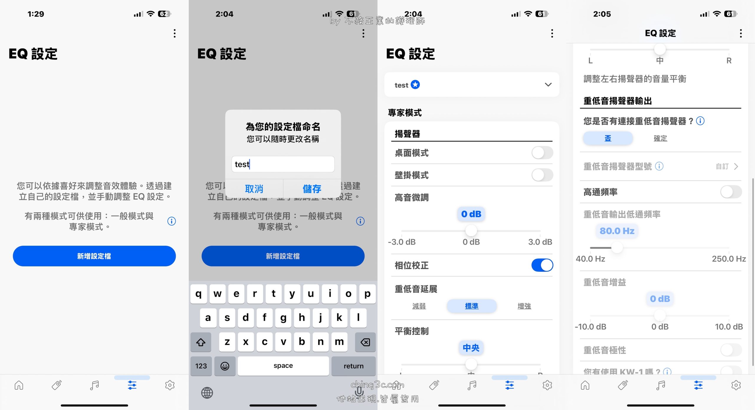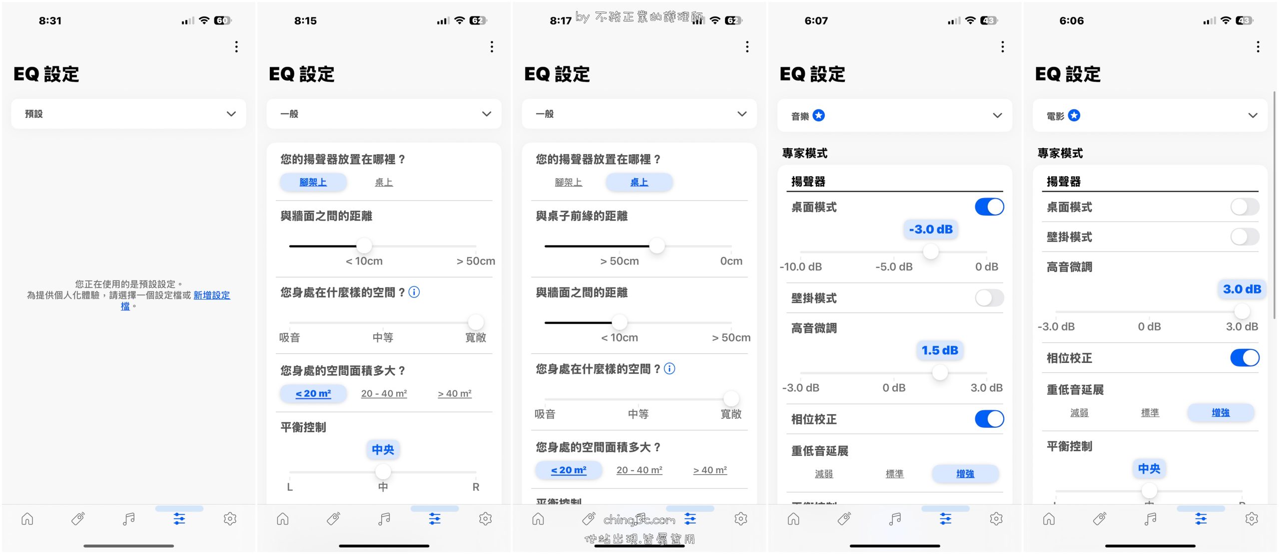 可自訂多組 EQ 分為一般模式與專家模式,以對應不同使用情境。相位校正功能,簡單來說就是讓所有聲音頻段同時抵達耳朵,避免模糊或定位不準。通常開啟可提高清晰度、人聲或樂器的排列或低頻表現等 ; 故個人是建議開啟的。