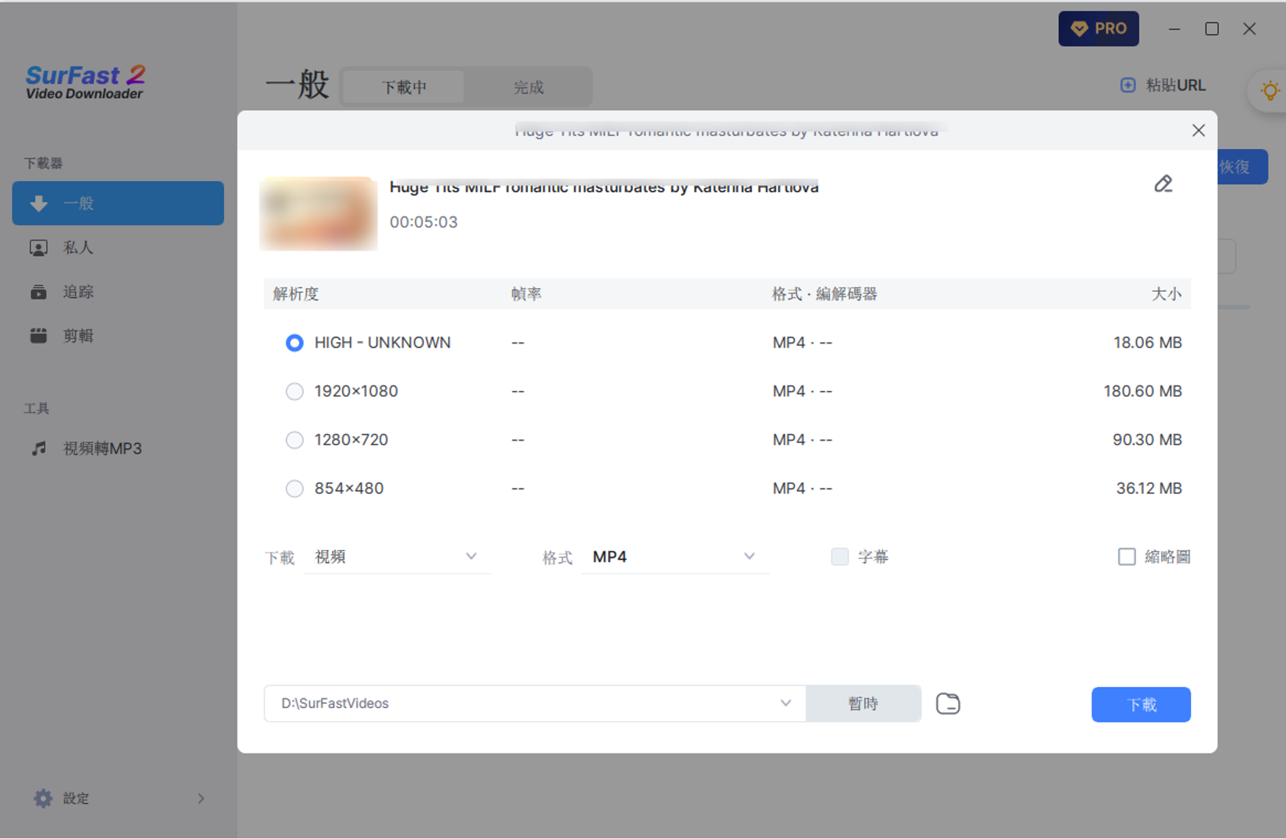 步驟三:解析完成後,會彈出視窗顯示影片標題、長度及可用畫質(從 144p 到 8K)。選擇適合的畫質(推薦 1080p,能平衡檔案大小與畫質清晰度),確認儲存路徑,然後點擊「下載」即可開始擷取影片。
