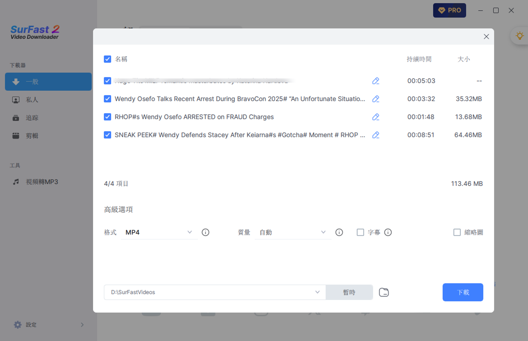 SurFast Video Downloader 的批量功能強大,不僅支援播放清單(playlist)下載,還能一次處理高達 50 部影片,只需提供所有 URL 即可(Pro 版專屬,免費試用版僅限單片)。