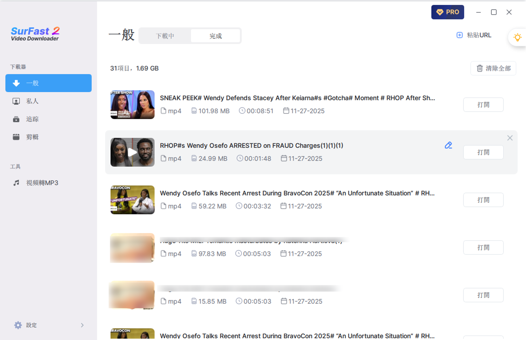 步驟五:下載完成後,切換至「完成」分頁,可點擊影片進行預覽播放,或直接開啟儲存資料夾確認檔案完整性。
