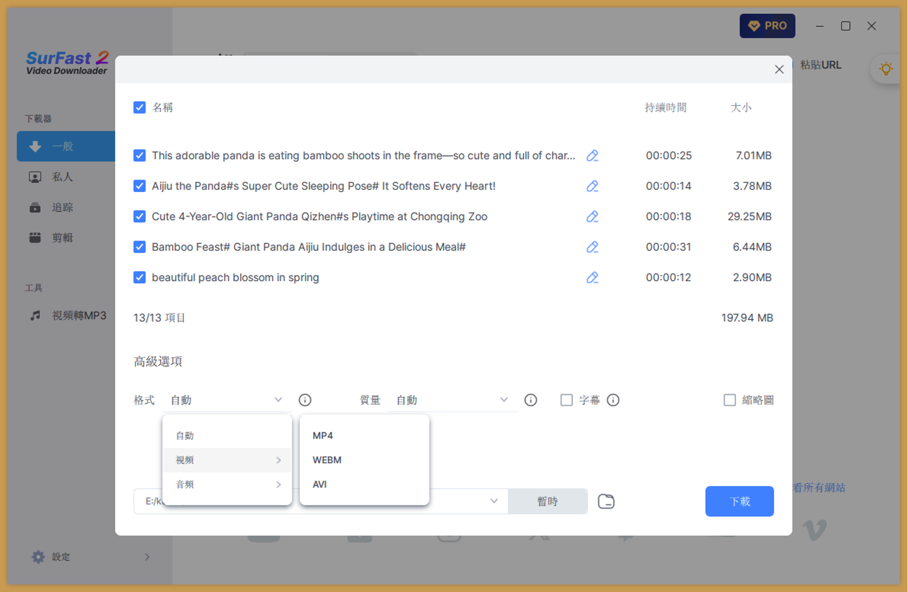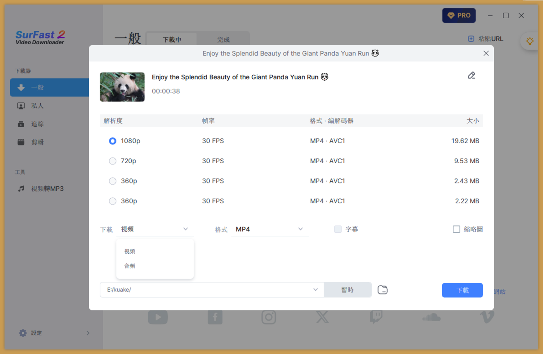 SurFast Video Downloader 內建多達數十種影片與音檔格式支援,一鍵下載即直接轉換,無需額外轉檔軟體或繁瑣轉檔步驟,讓您輕鬆管理收藏檔案。