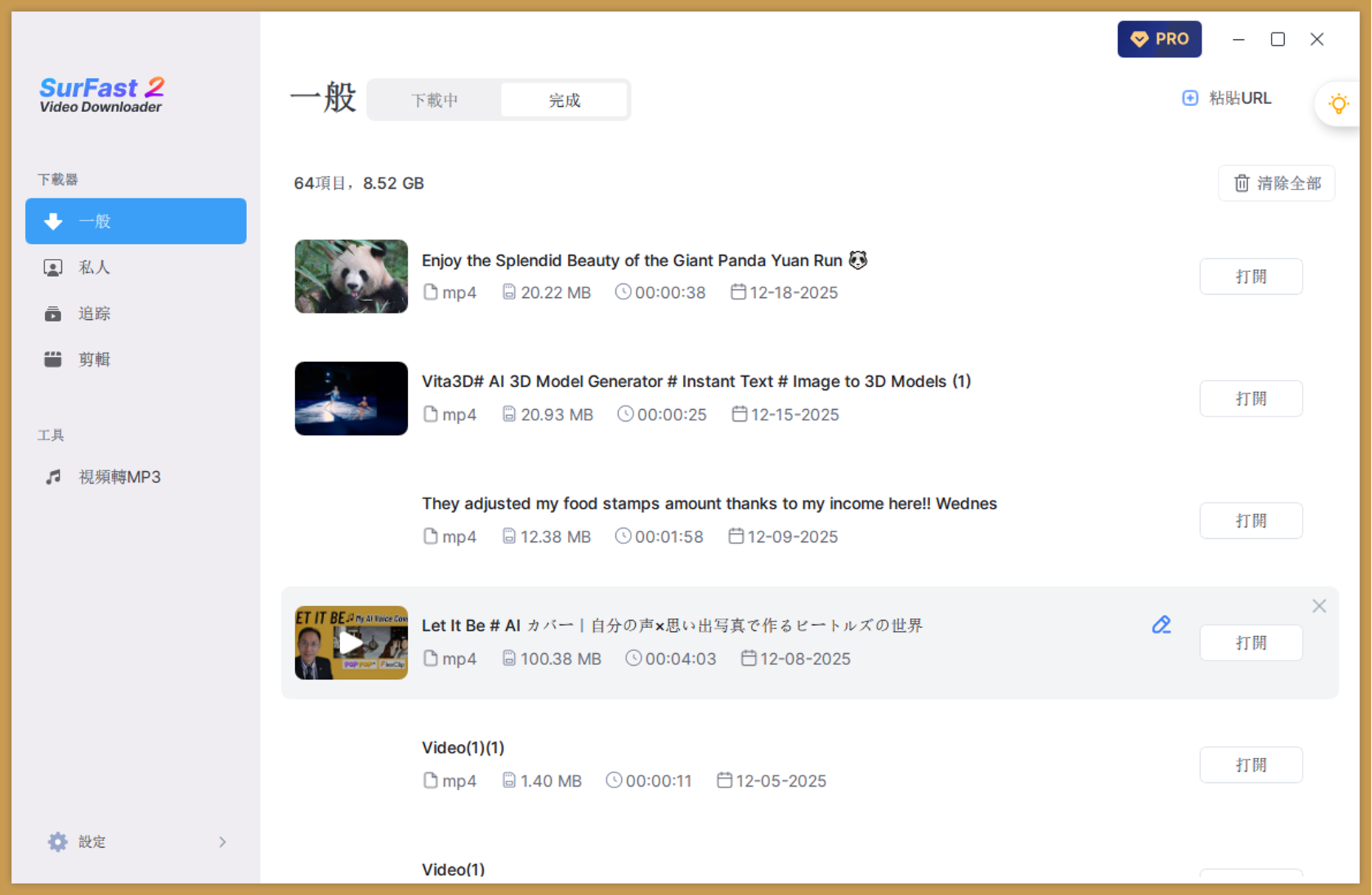 步驟四:下載過程中,可在「一般」>「下載中」分頁查看進度。下載時間視影片大小而定,通常短片可在 1-3 分鐘內完成。MP3 文檔可以在數秒完成。