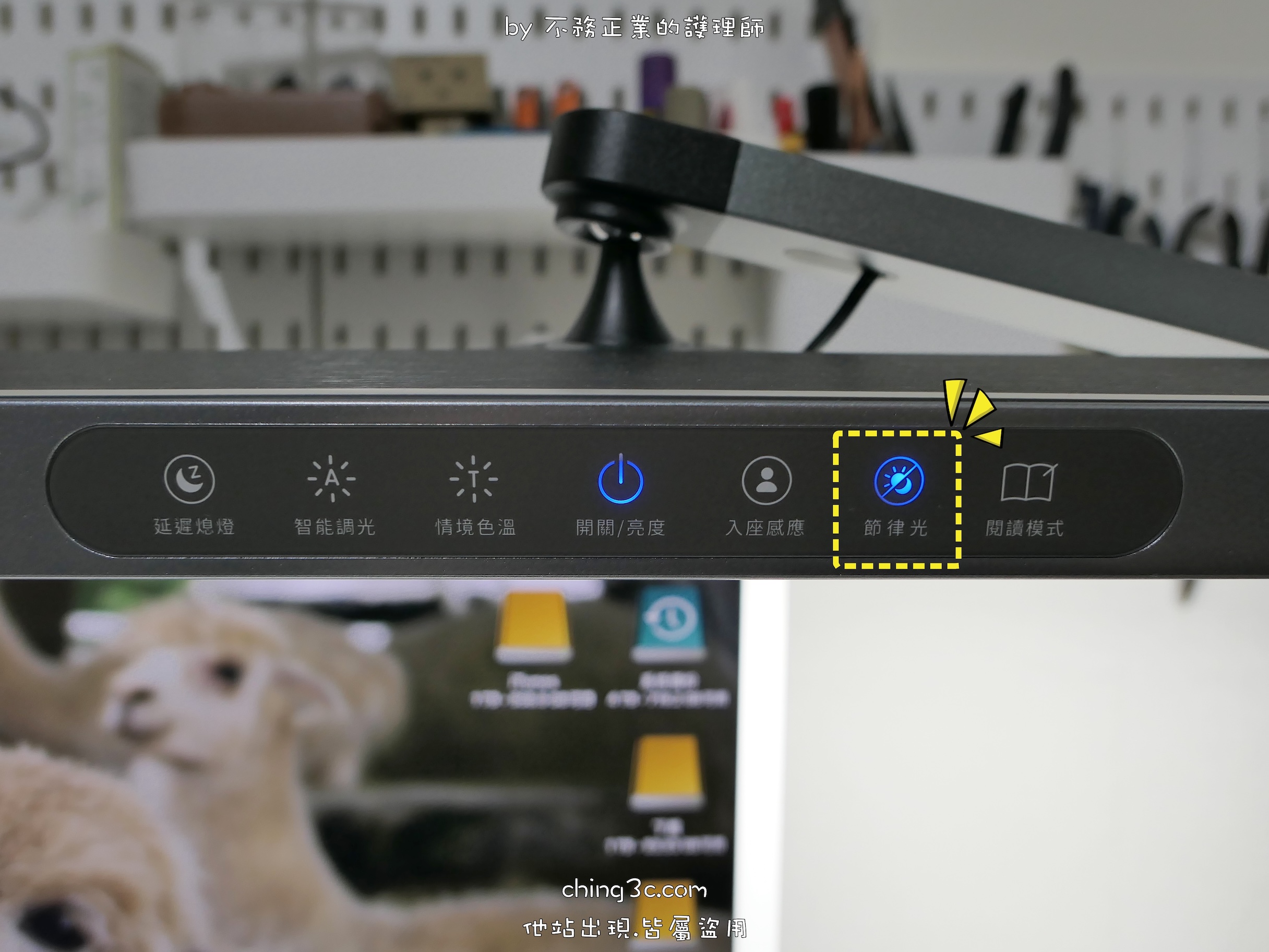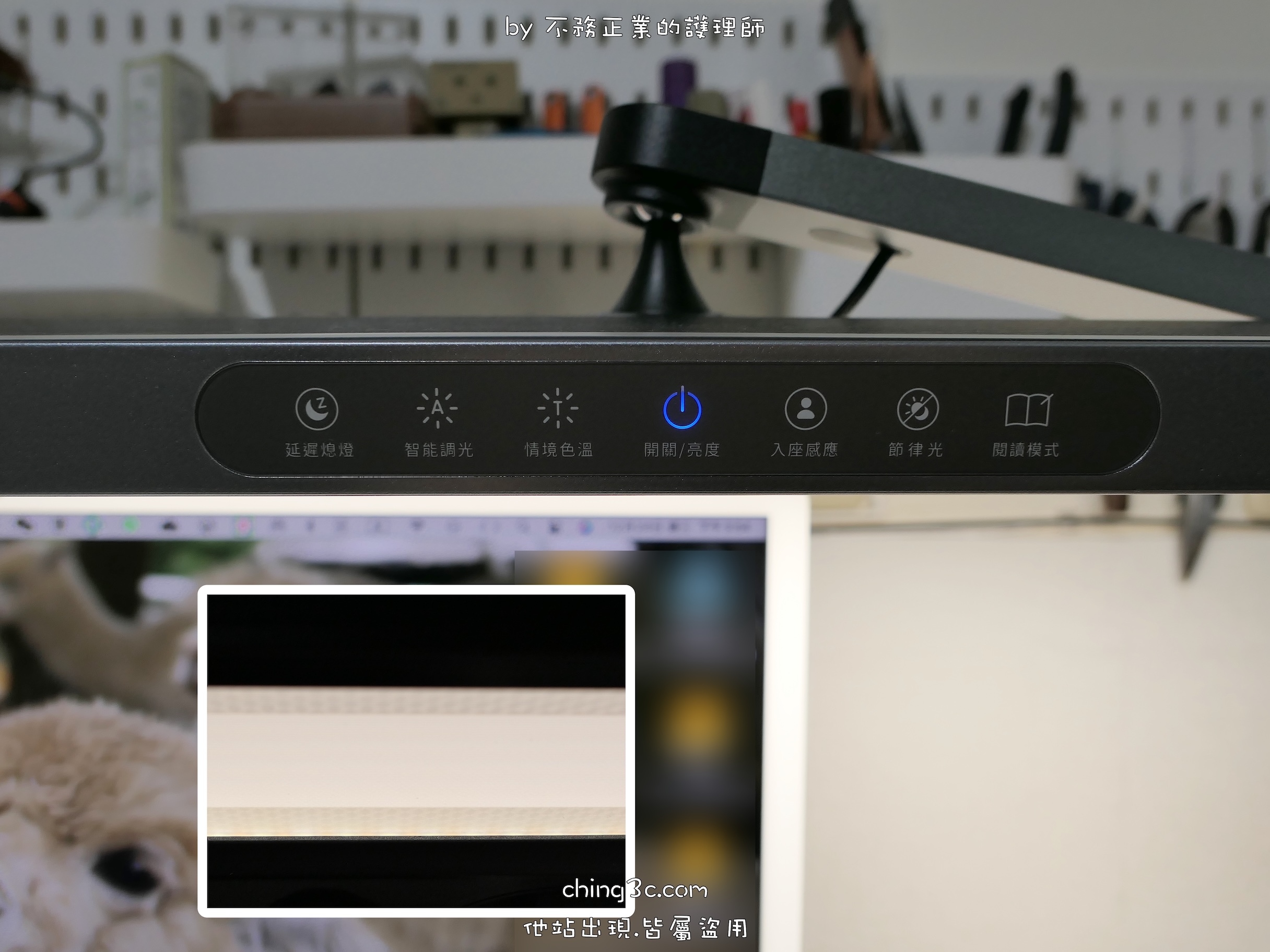 - 入座感應:開啟此功能,感應指示燈會開始閃爍,閃爍 10 秒後,感應指示燈長亮此時開始偵測是否有人在書桌前方。人離開 10 分鐘後會自動關燈。